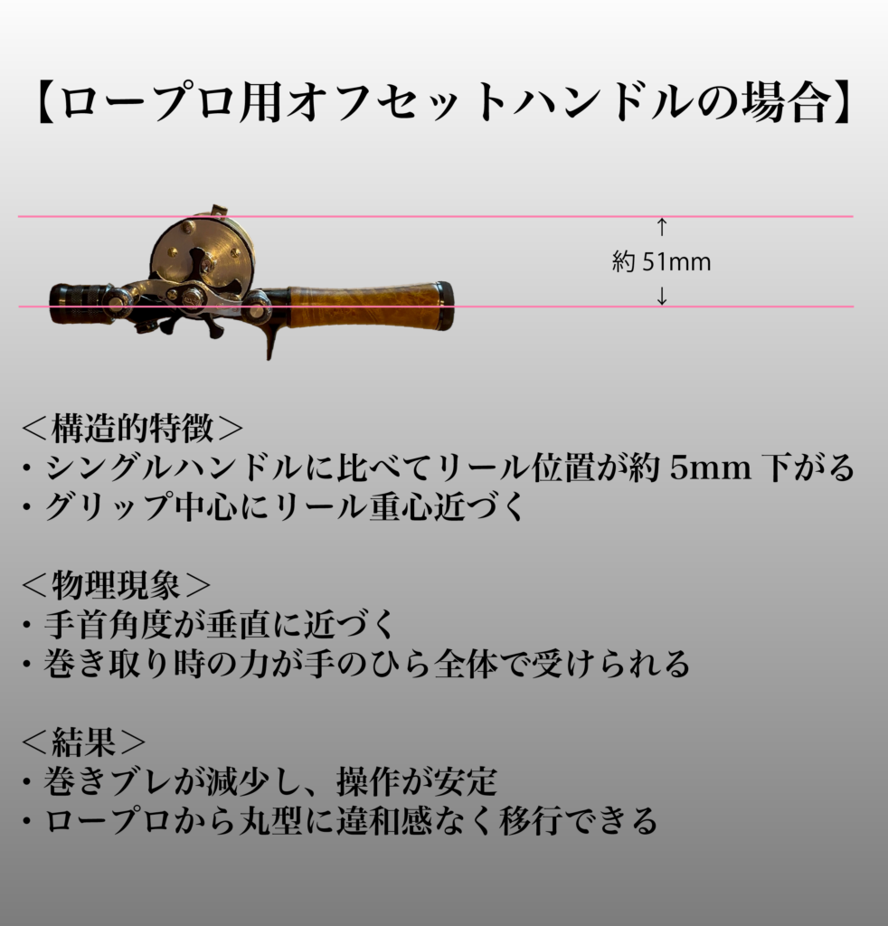 丸型リールは、ハンドル次第で本当に別物になります。
